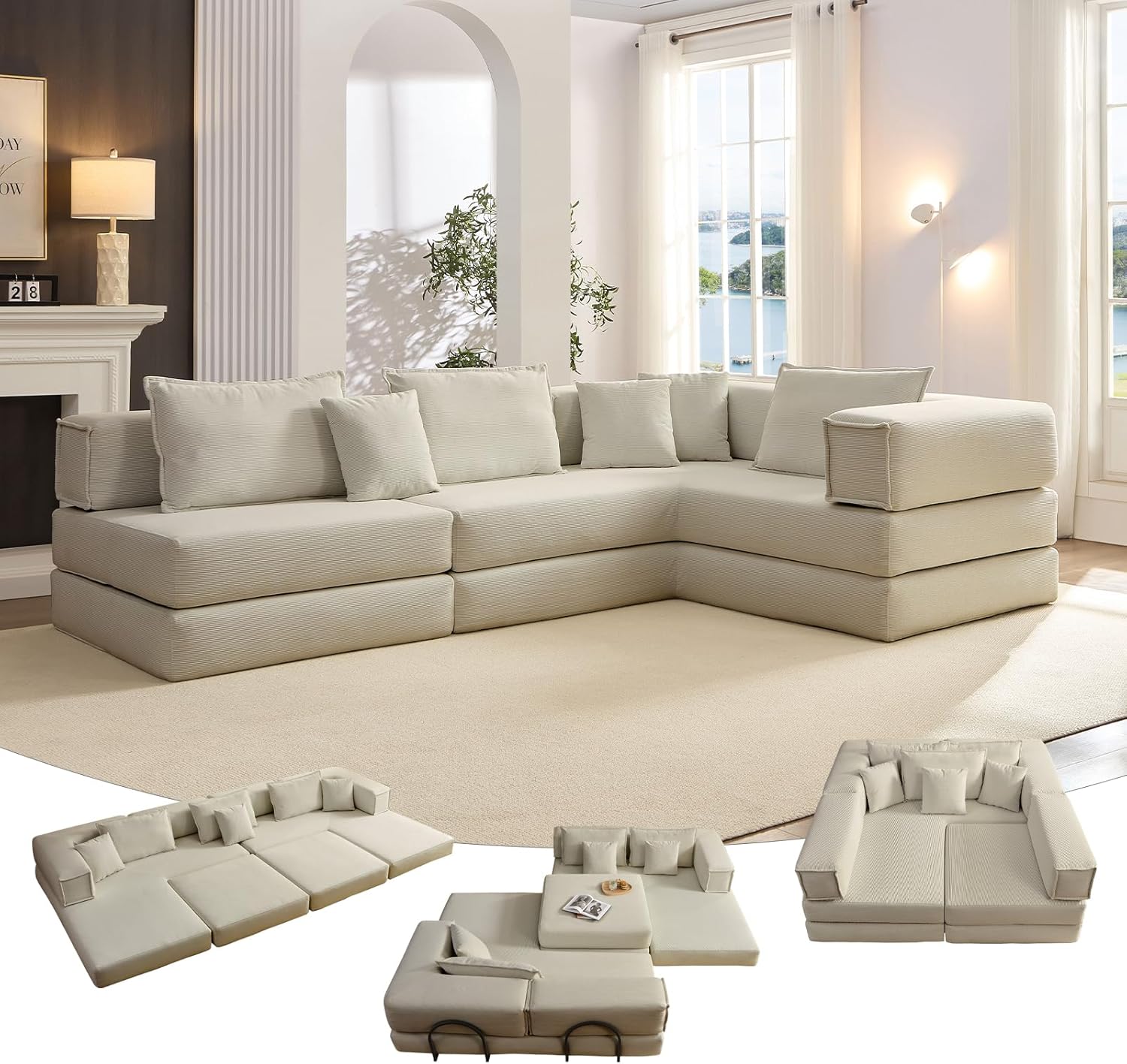Multifuncionalidade: muitos sofás de compressão apresentam designs modulares ou podem ser convertidos em camas, o que os torna altamente versáteis para espaços compactos ou salas multiuso.