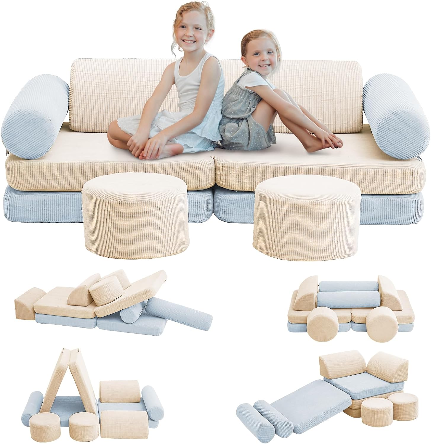 Este versátil sofá infantil de 10 peças pode se transformar em mais de 30 configurações criativas — como piscina de bolinhas, cama, caverna, castelo, sofá para três pessoas, poltrona reclinável, barraca e muito mais. É um playground de possibilidades onde a imaginação do seu filho guia o caminho.