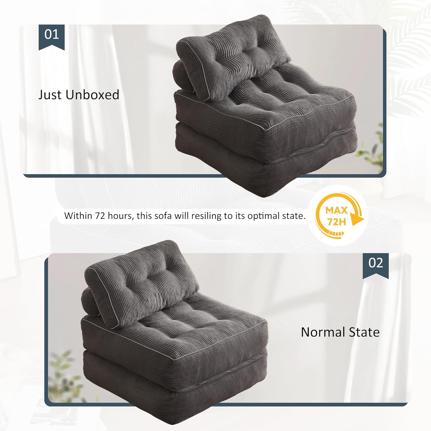 【Estilo impressionante】 Este sofá apresenta um design de favo de mel 3D, que não só é uma área de descanso perfeita, como também combina perfeitamente com seus móveis para decorar seu espaço. Este sofá também possui assento único, 2 lugares, 3 lugares e pufe, permitindo que você escolha e combine de acordo com o tamanho do seu espaço. Há diversas opções de cores disponíveis, incluindo verde, laranja, cinza claro e muito mais. 【Material de alta qualidade】A cadeira de sofá tipo pufe é preenchida com espuma de memória de alta densidade, que é macia e resiliente. O pufe com alto rebote pode fornecer maciez extra e suporte acolchoado, mantendo o formato para uso prolongado. Você pode sentar e aproveitar seu tempo de relaxamento. 【Design ergonômico】 Este sofá passou por rigorosos testes de design, proporcionando apoio suficiente para as costas e uma experiência de assento respirável e confortável. O enchimento macio da almofada permite que todo o seu corpo mergulhe no conforto proporcionado pelo sofá. O design curvo pode prevenir melhor sua família de lesões devido a colisões no dia a dia. [Sofá de bolhas respiráveis] O sofá bolha adota um design de malha de favo de mel 3D, o que lhe confere alta extensibilidade e respirabilidade. O formato tridimensional e o design curvo tornam este sofá único. Este pequeno sofá é a área de descanso perfeita para salas de estar, apartamentos e espaços pequenos. [Não requer montagem] Este sofá não requer instalação. Após receber a embalagem, basta abri-la e retirar o sofá para desfrutar da experiência maravilhosa que ele proporciona. Evitando completamente o enorme inconveniente causado pelas etapas complexas de montagem dos sofás tradicionais.