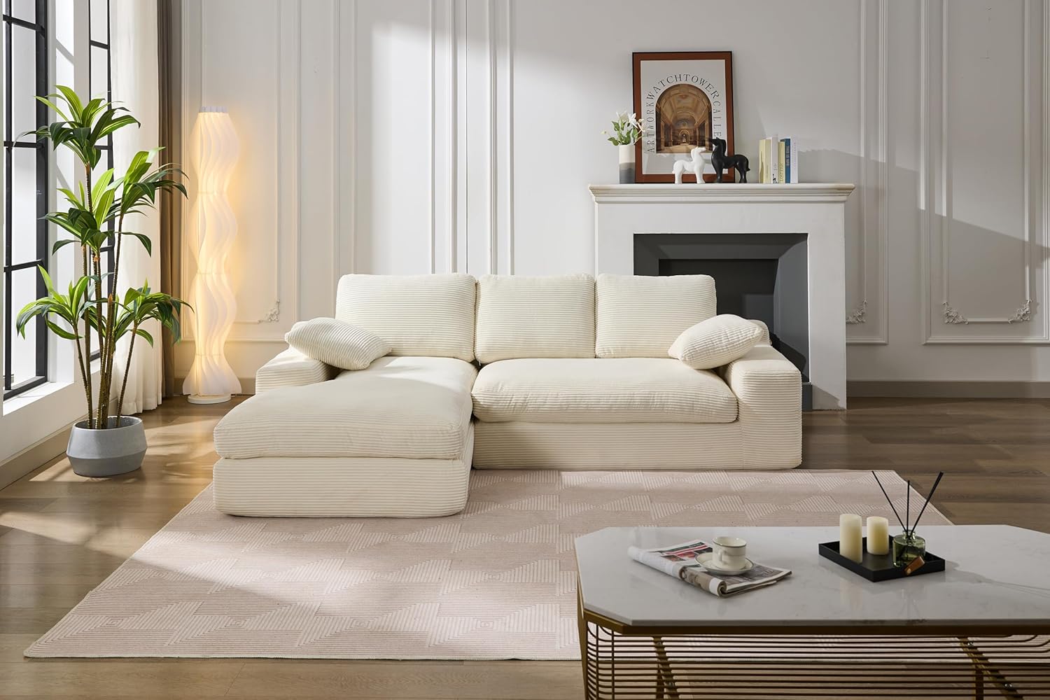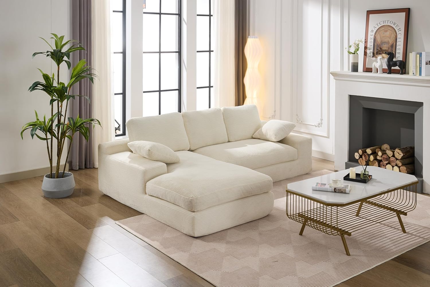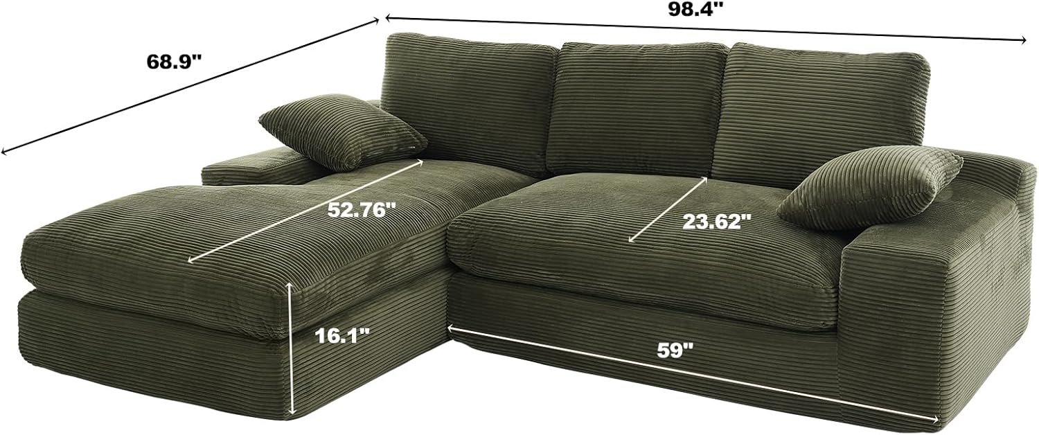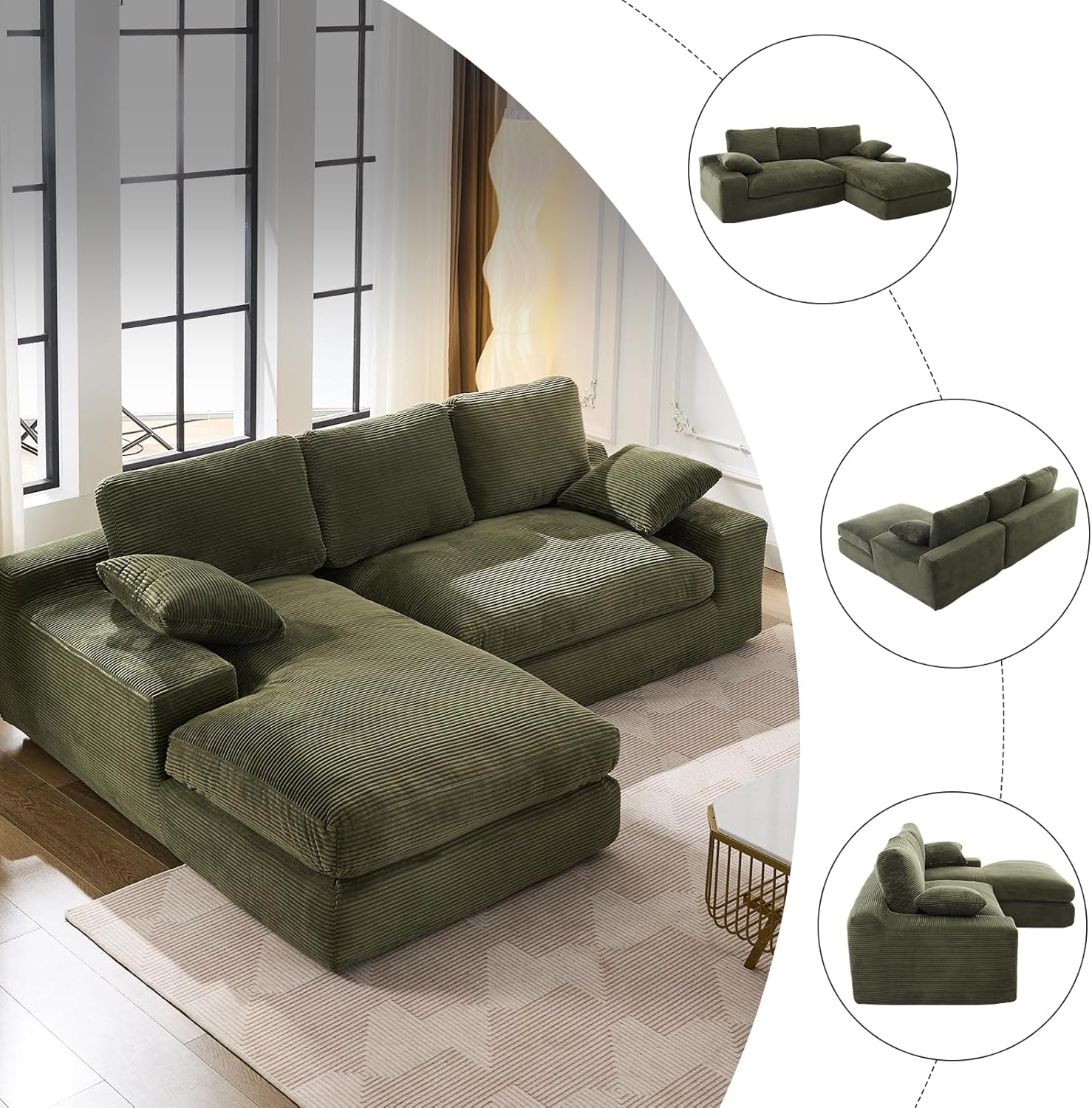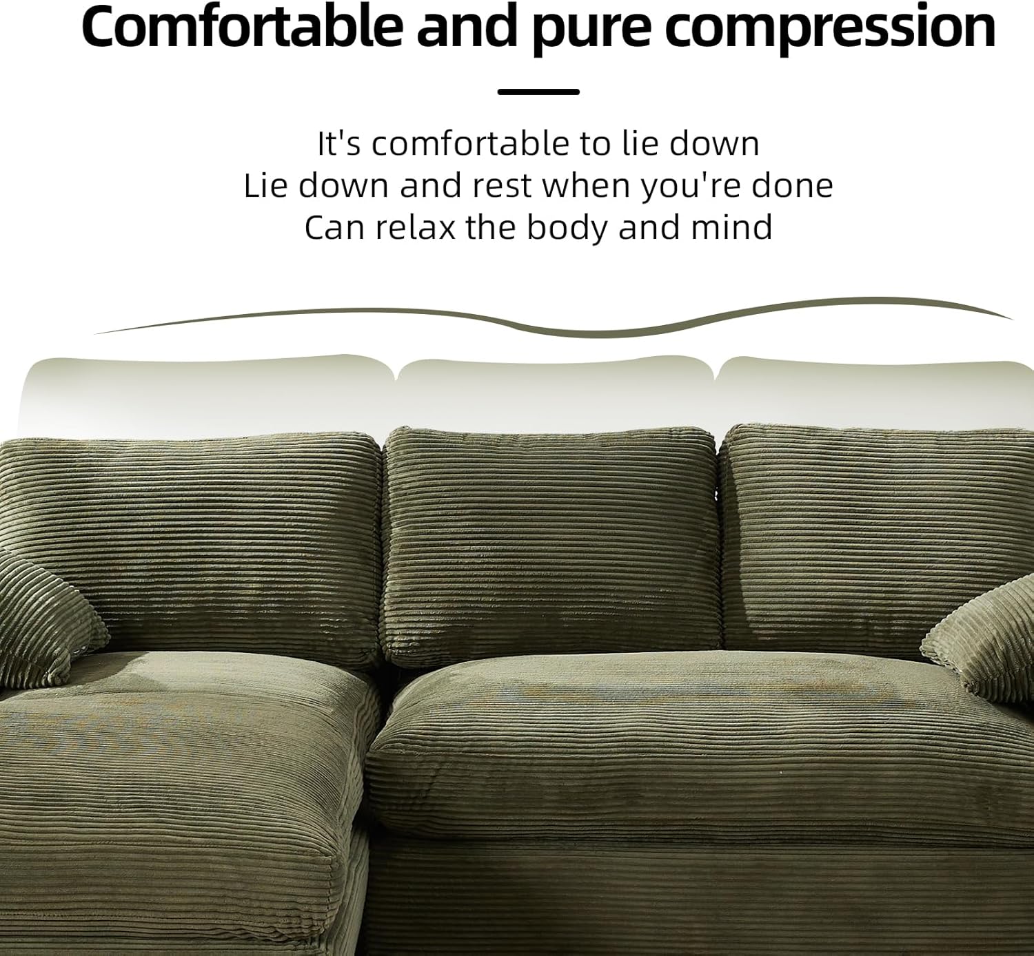 Feito com tecido de veludo cotelê resistente a amassados, este sofá de canto prioriza o conforto e a qualidade do material. A textura refinada adiciona um toque sofisticado a qualquer casa. Apoiado por uma estrutura de espuma e molas duráveis, oferece conforto e resiliência duradouros. Combine-o com almofadas macias e duráveis para criar um ambiente elegante e convidativo.