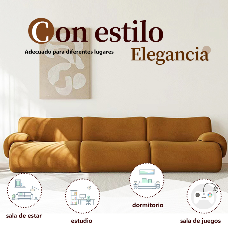 【Sofá curvo elegante】 Com uma silhueta aerodinâmica, porém monobloco, este sofá curvo traz um estilo moderno e confere ao seu espaço uma decoração elegante e luxuosa. E a ausência de pernas permite que este sofá flua com elegância sem obstáculos, conferindo um toque contemporâneo e atraente à sua casa.