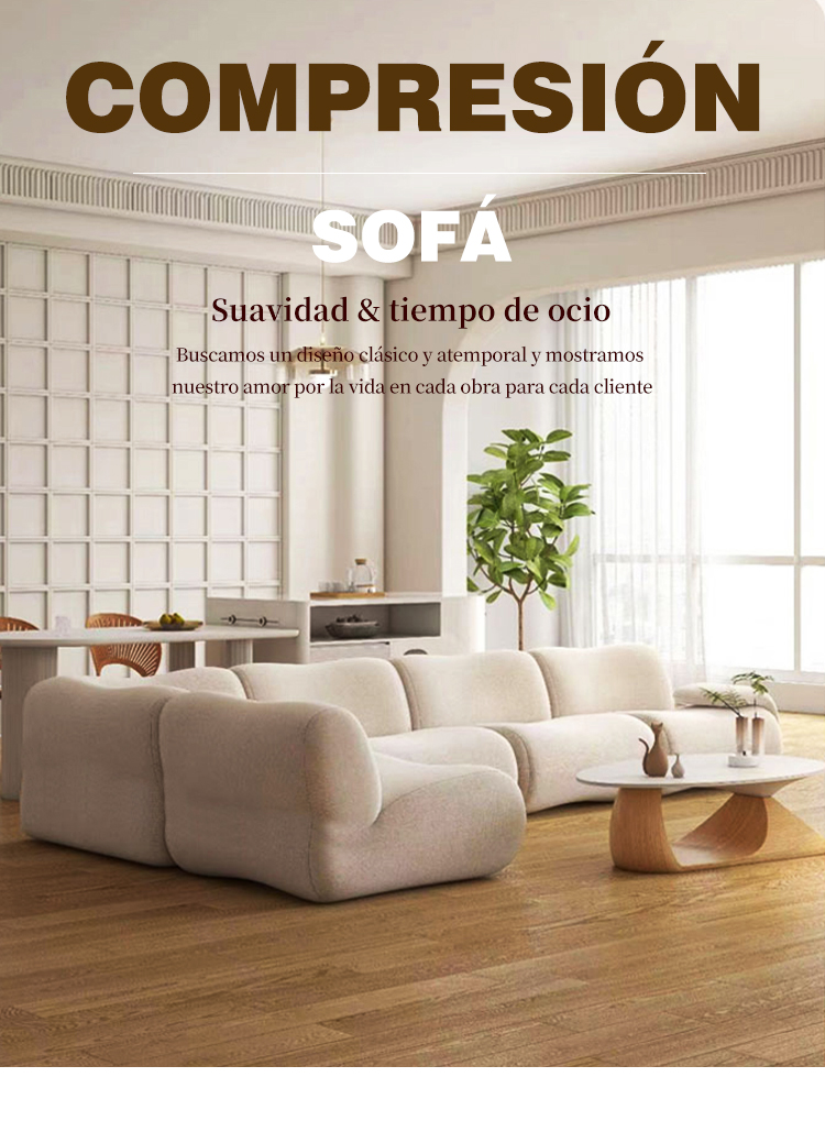 【Conforto na Nuvem】 Nossos sofás curvos em formato de nuvem apresentam design ergonômico, proporcionando suporte incomparável ao seu corpo e um relaxamento luxuoso. As três almofadas incluídas aumentam a sensação de aconchego do sofá curvo, proporcionando suporte e conforto extras. Essas almofadas não são apenas práticas, mas também contribuem para a estética moderna e minimalista do sofá.
