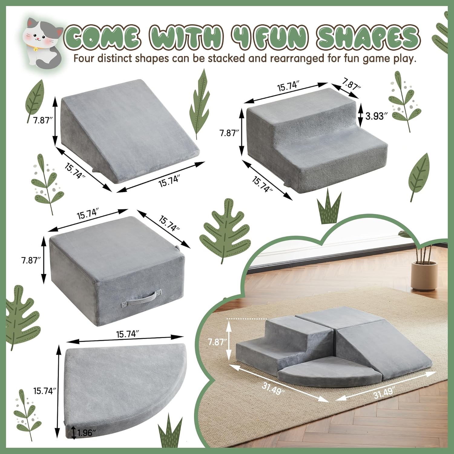 Incentive a aprendizagem autodirigida com um sofá de brincar modular e aberto! As crianças podem construir fortes de espuma, recantos aconchegantes de leitura ou emocionantes pistas de obstáculos — desenvolvendo habilidades de resolução de problemas por meio de brincadeiras práticas e imaginativas. Perfeito para o crescimento inspirado no método Montessori para crianças de 3 a 10 anos.