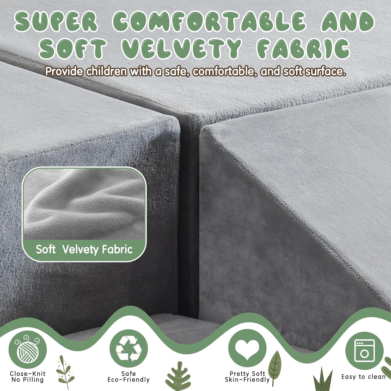 Transforme o sofá modular em uma montanha de escalada, palco para histórias ou plataforma de construção STEM! A espuma de alta resiliência retorna ao formato original após cada salto, enquanto os tecidos macios e sensoriais estimulam a brincadeira criativa. Projetado para acompanhar o crescimento da imaginação do seu filho.
